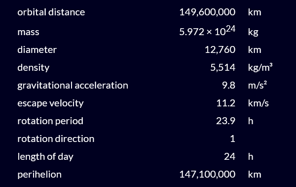 It tells us that the mass of the Earth is 5.972 × 1024 kg.