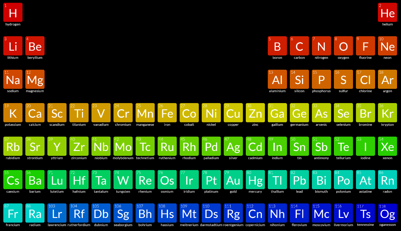 - wordings and values from List of chemical elements – Wikipedia created by Wikipedia licensed under CC BY-SA 4.0 according to Wikipedia license notice