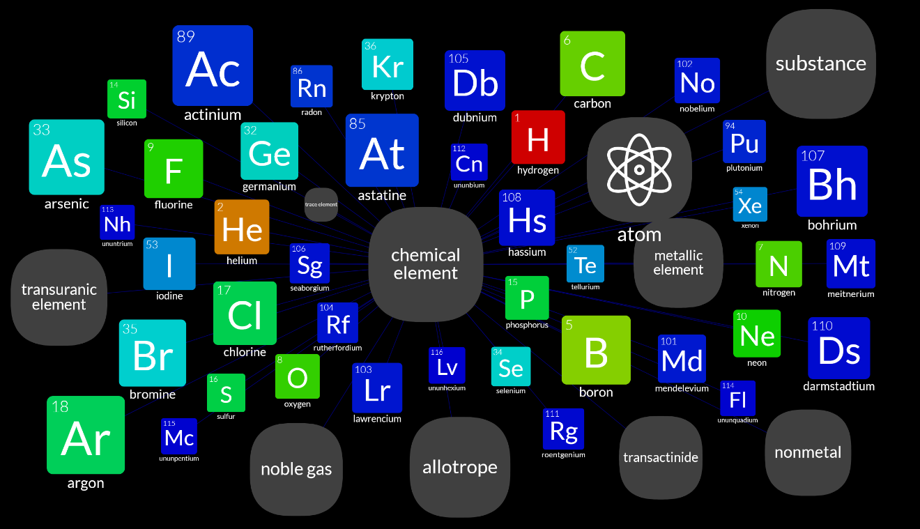 If you have values for all the chemical elements, you can visualize them in meaningful ways...