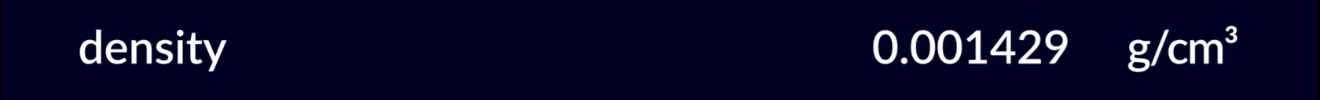 So the value tells us that the density of oxygen is 0.001429 g/cm3.